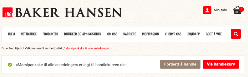 Hente hos Baker Hansen / Pick up at Baker Hansen – Select the store where you’d like to pick up the cake from the dropdown menu.