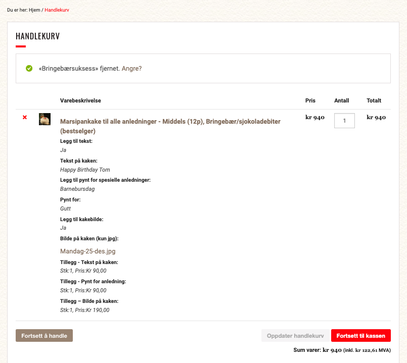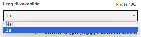 *Pris kr 190,- / Cost for a picture on the cake: NOK 190,-