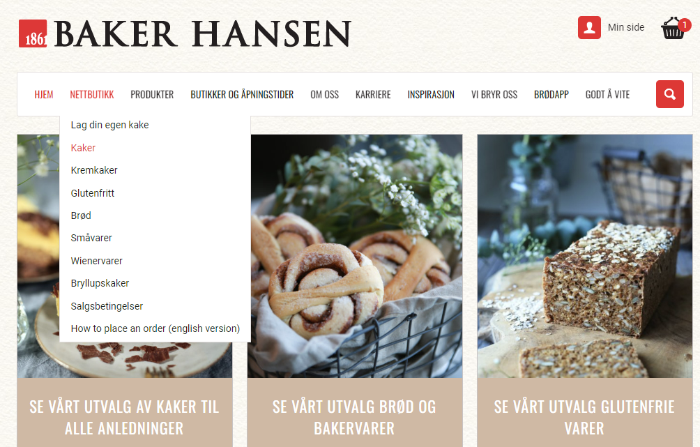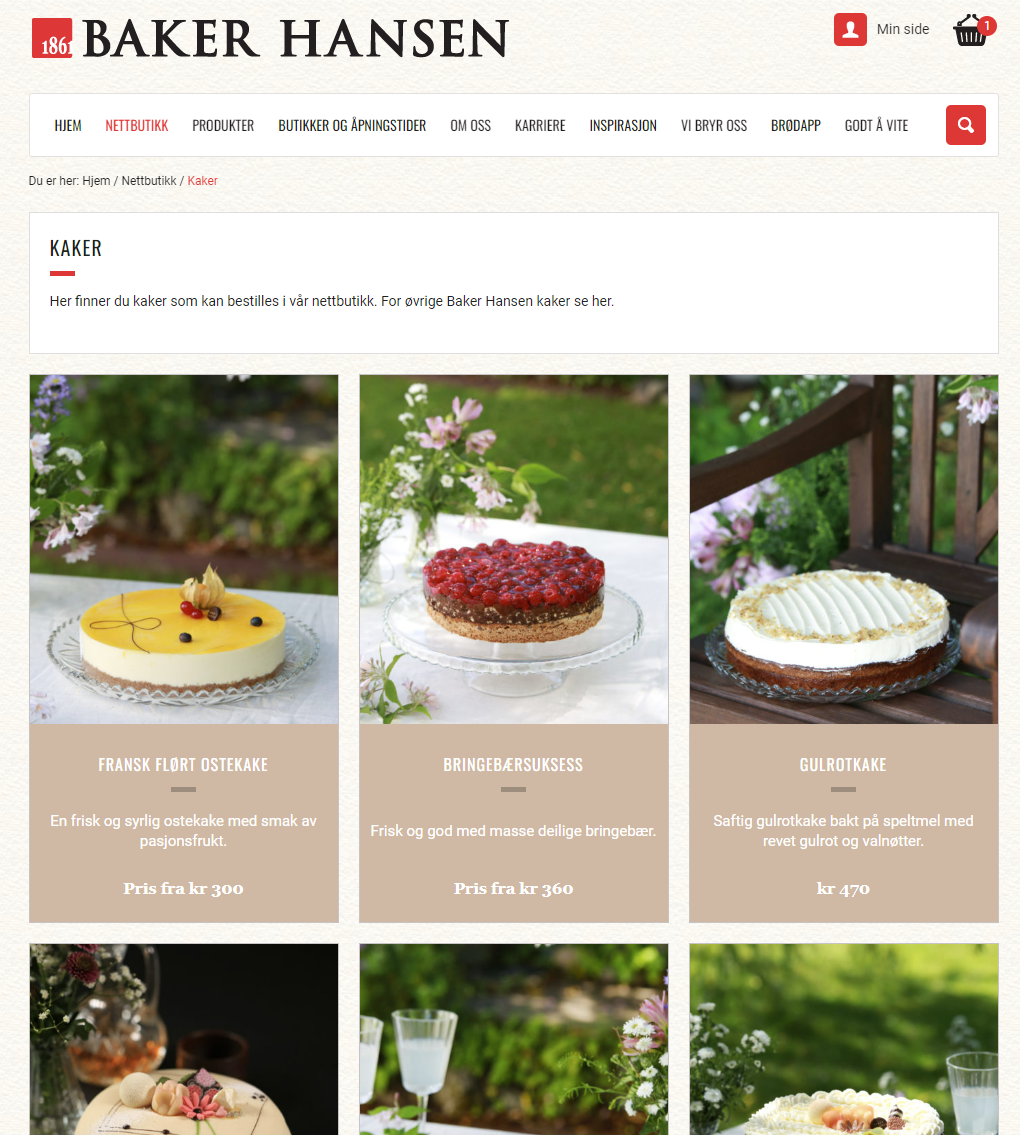 1.Go to «Nettbutikk» / Webshop then Click on «Kaker» / Cakes