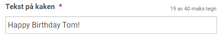 *Pris kr 90,- / Cost for custom text on the cake: NOK 90,-