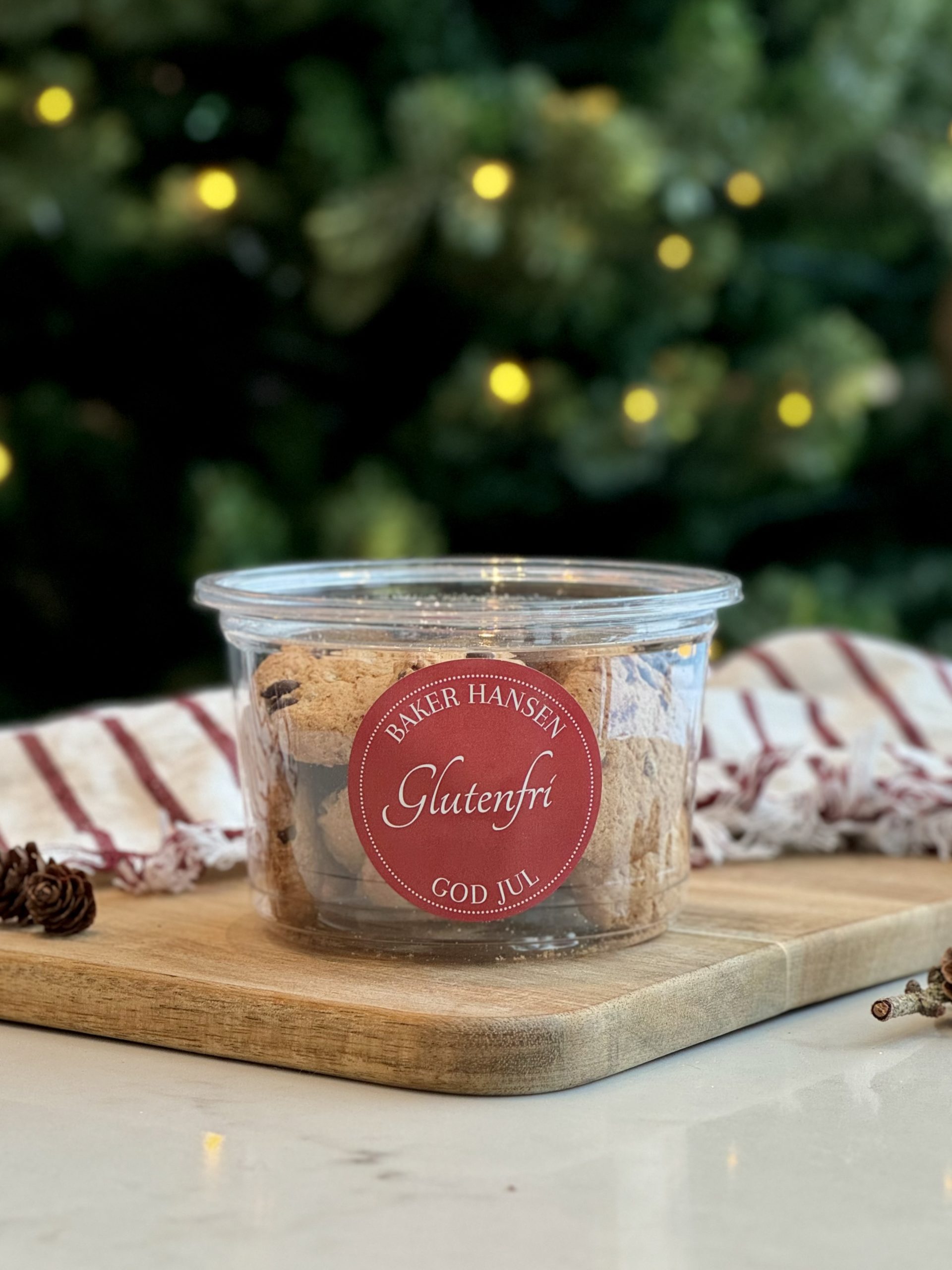 | Gl.fritt mel (tapiokastivelse, potetstivelse, rismel, mais-stivelse), sukker, mørk sjokolade (kakaomasse, sukker, emulgator (E322 (soya)), nat. vaniljearoma), margarin (fullherdet rapsolje, raps-olje, fullherdet kokosolje, emulgator (E471), salt, surhetsreg. middel (E330), aroma, farge (E160a)), havregryn, egg, havremel, hevemiddel (E574, E500), vaniljesukker (melis, potetstivelse, aroma), fiberhusk, glutenfri surdeig (ris), jodsalt, stabilisator (E412, E415, E464, E466), surhetsreg. middel (E263). |